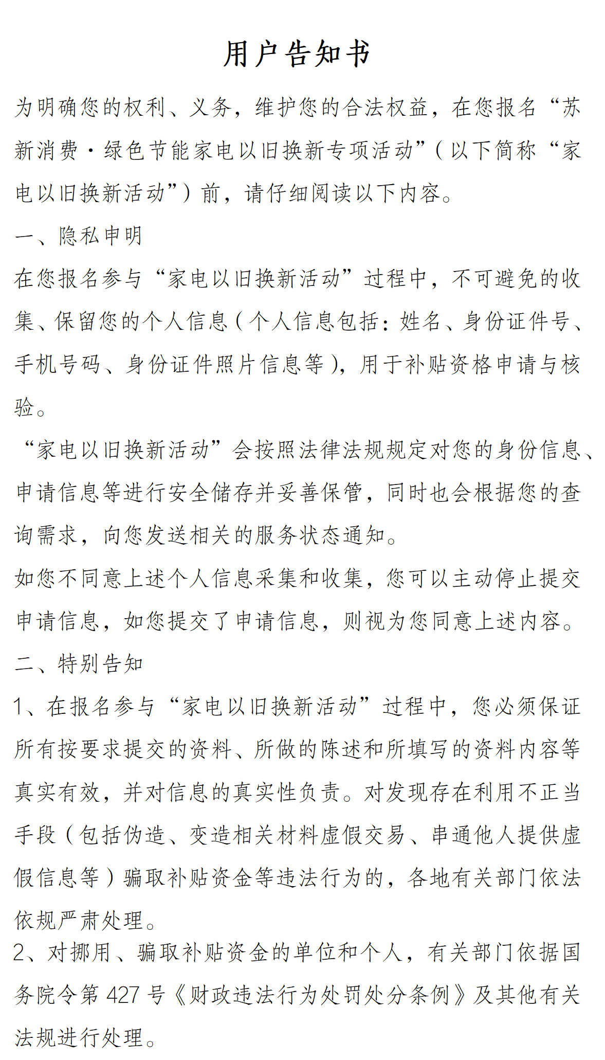 完成实名认证报名,即可享受绿色节能家电以旧换新补贴。